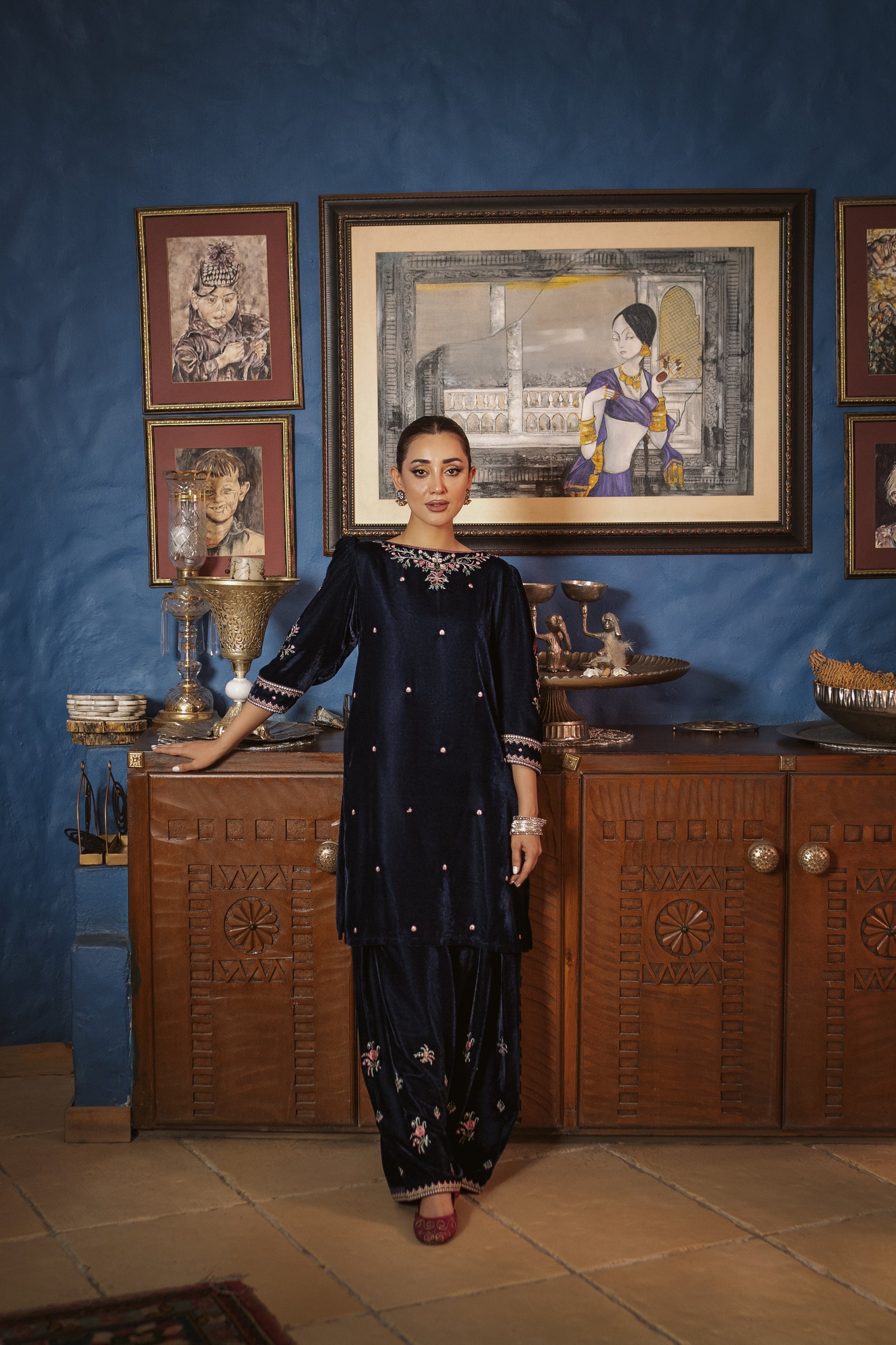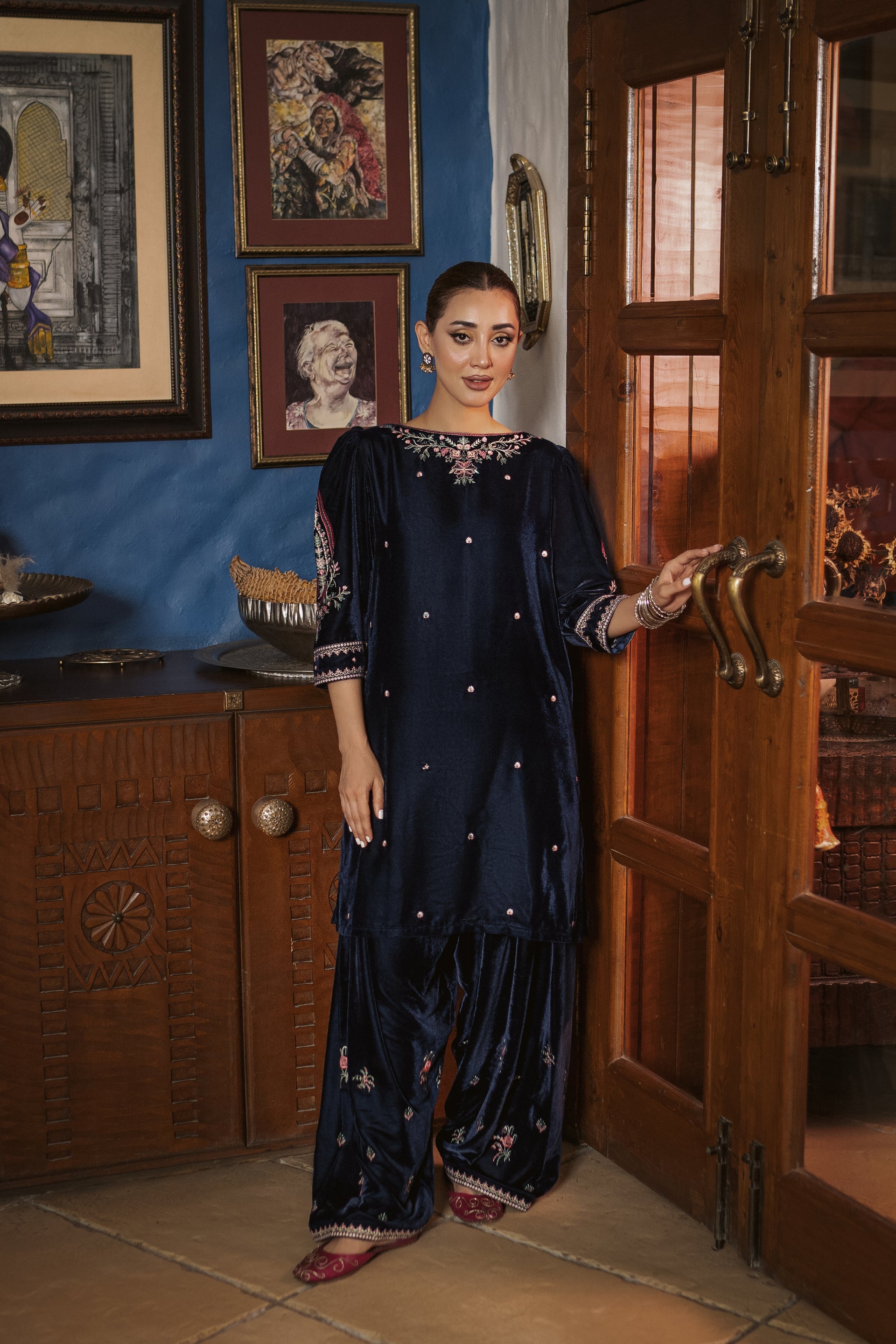 READY TO WEAR 2PC VELVET SUIT WITH FARSHI SHALWAR