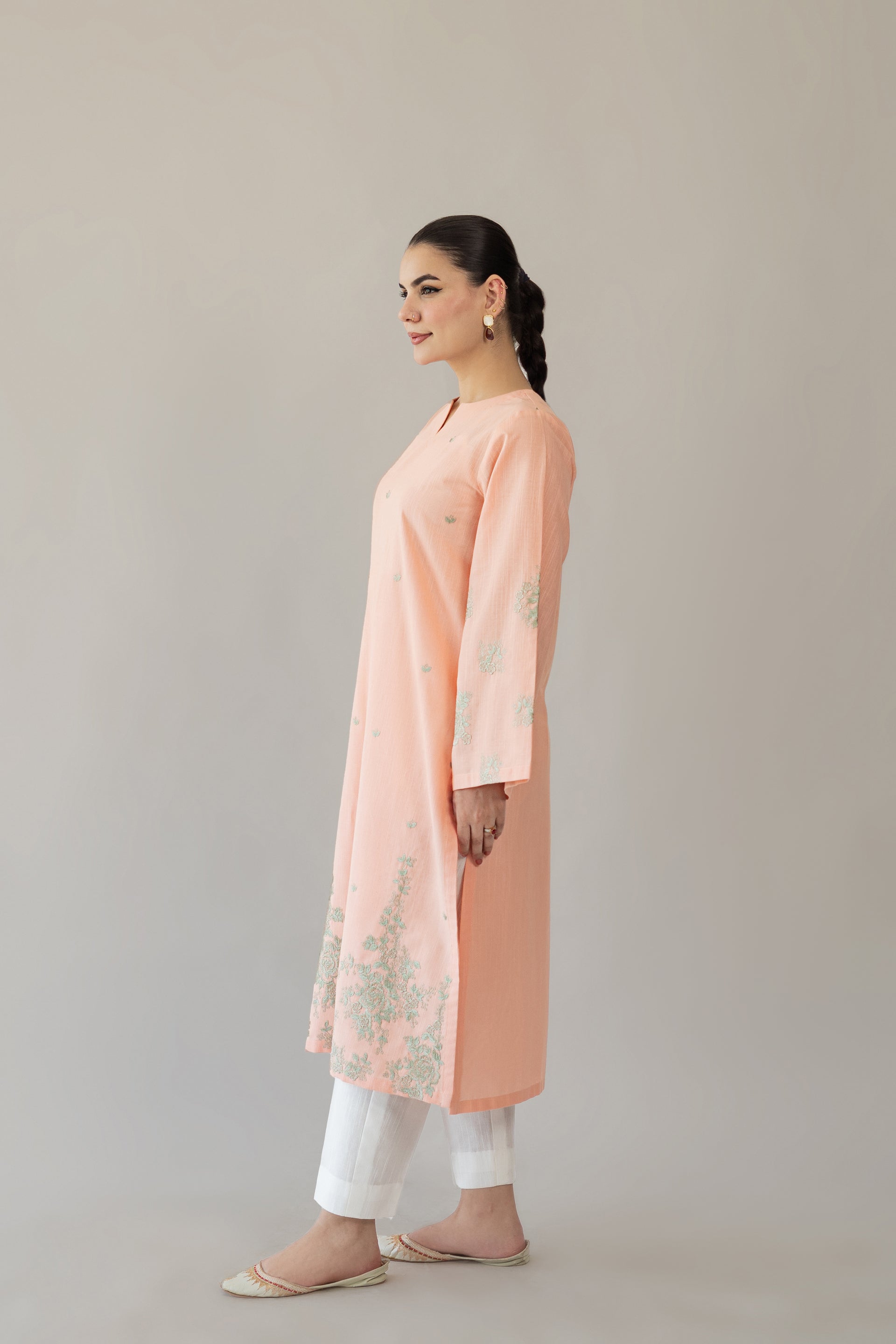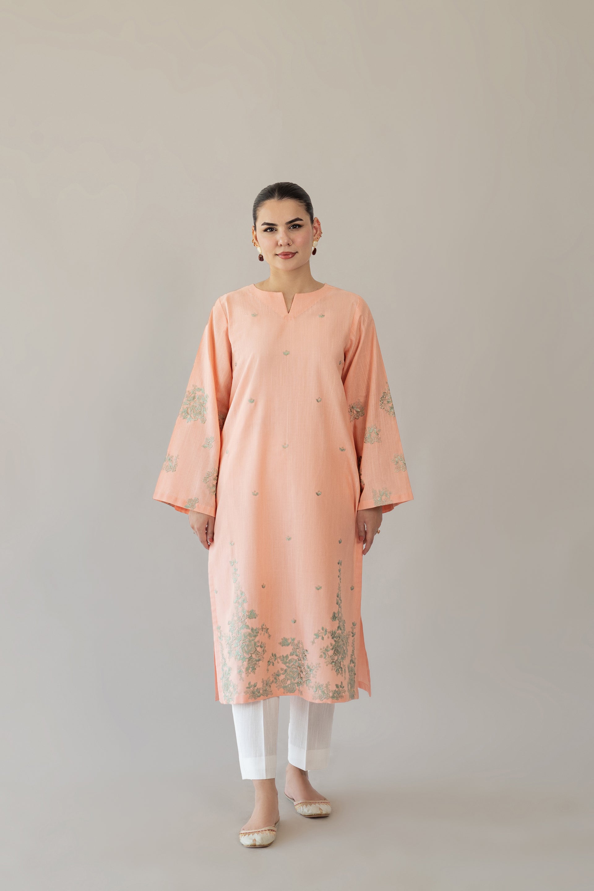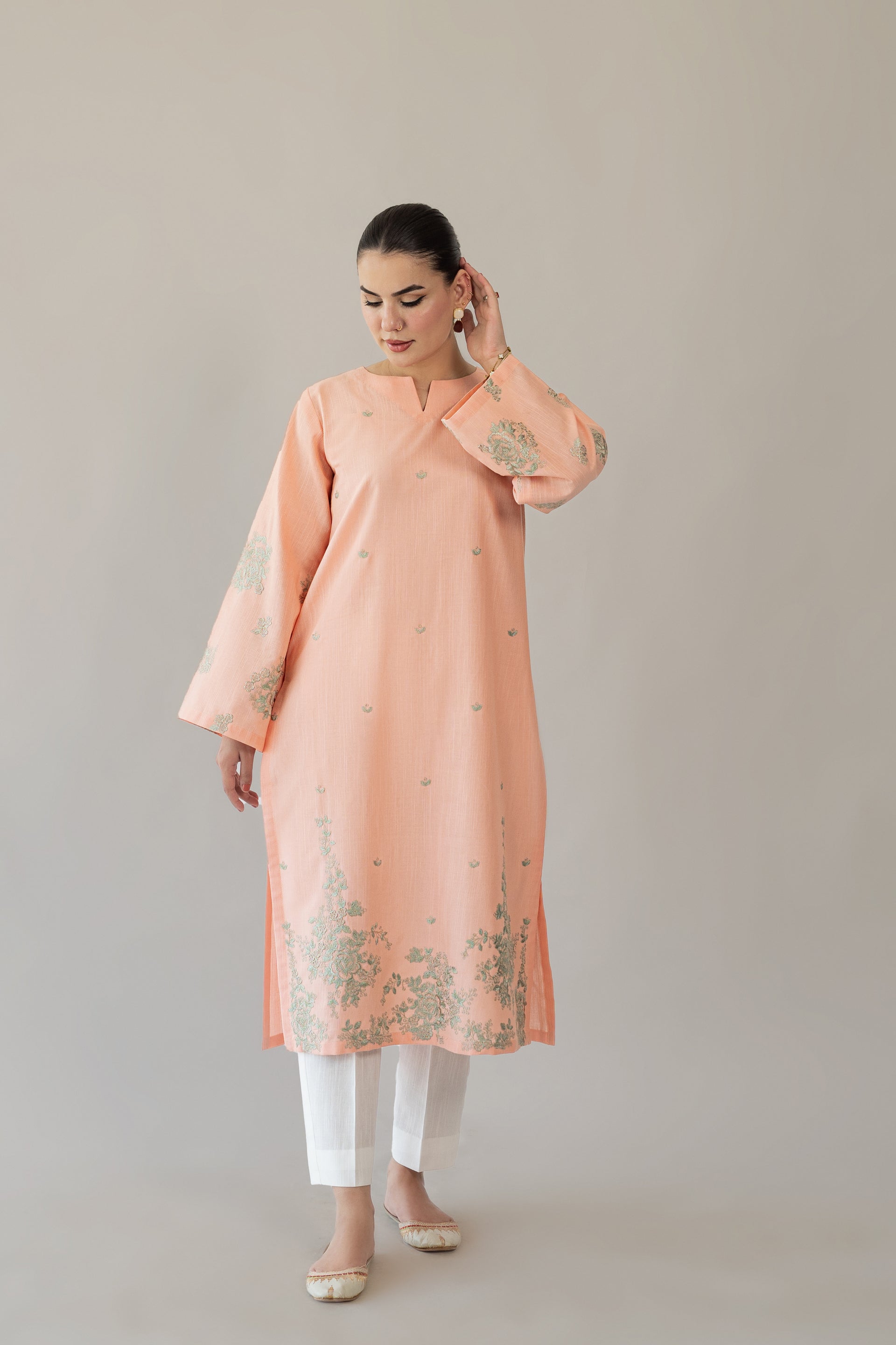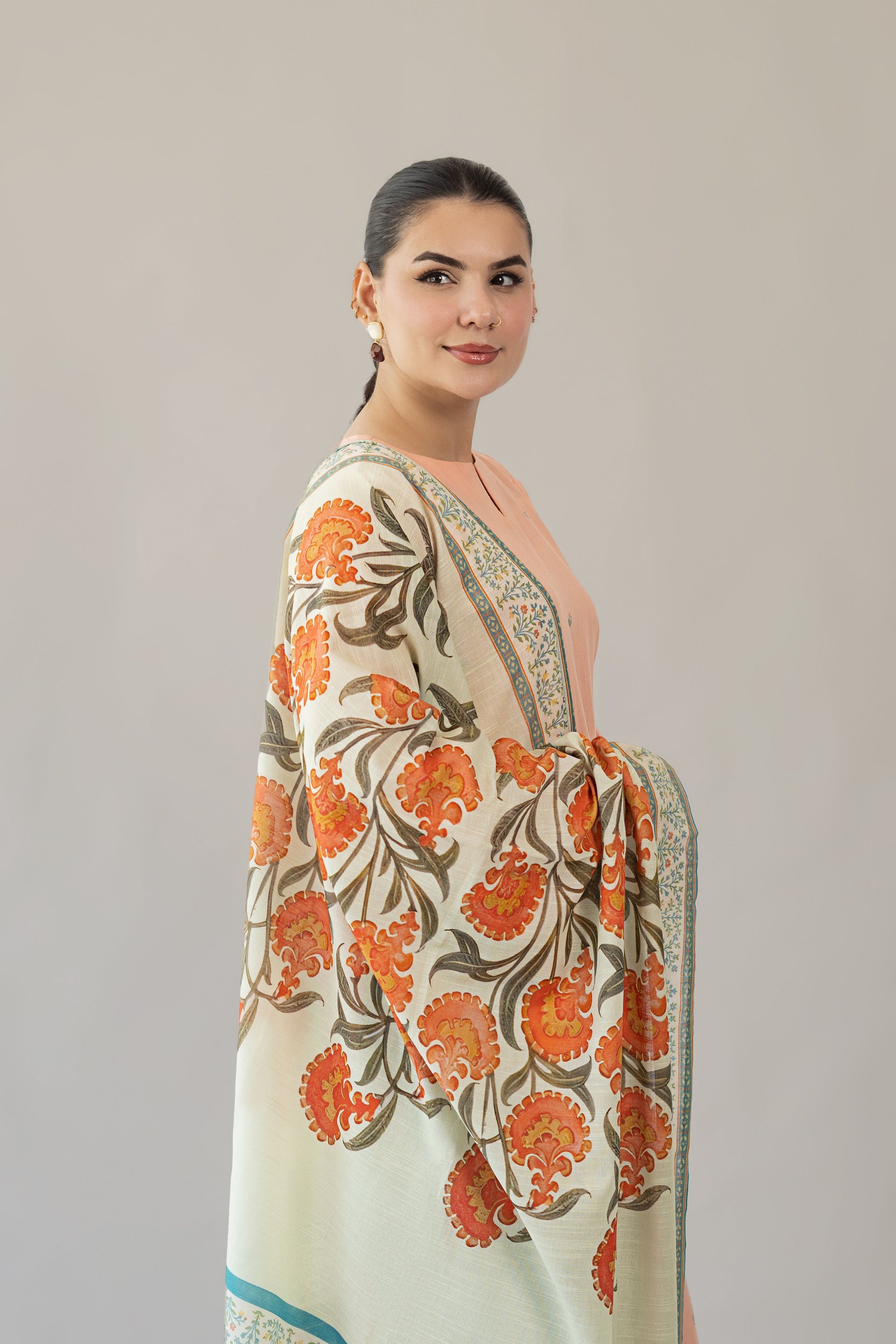 Elevate your wardrobe with this sophisticated 3-piece khaddar suit, designed for effortless elegance. The ensemble features a meticulously embroidered long shirt with detailed threadwork on the front and sleeves, paired with straight-cut contrasting trousers for a refined silhouette. Complete the look with the coordinating printed khaddar shawl. Crafted from premium khaddar fabric.