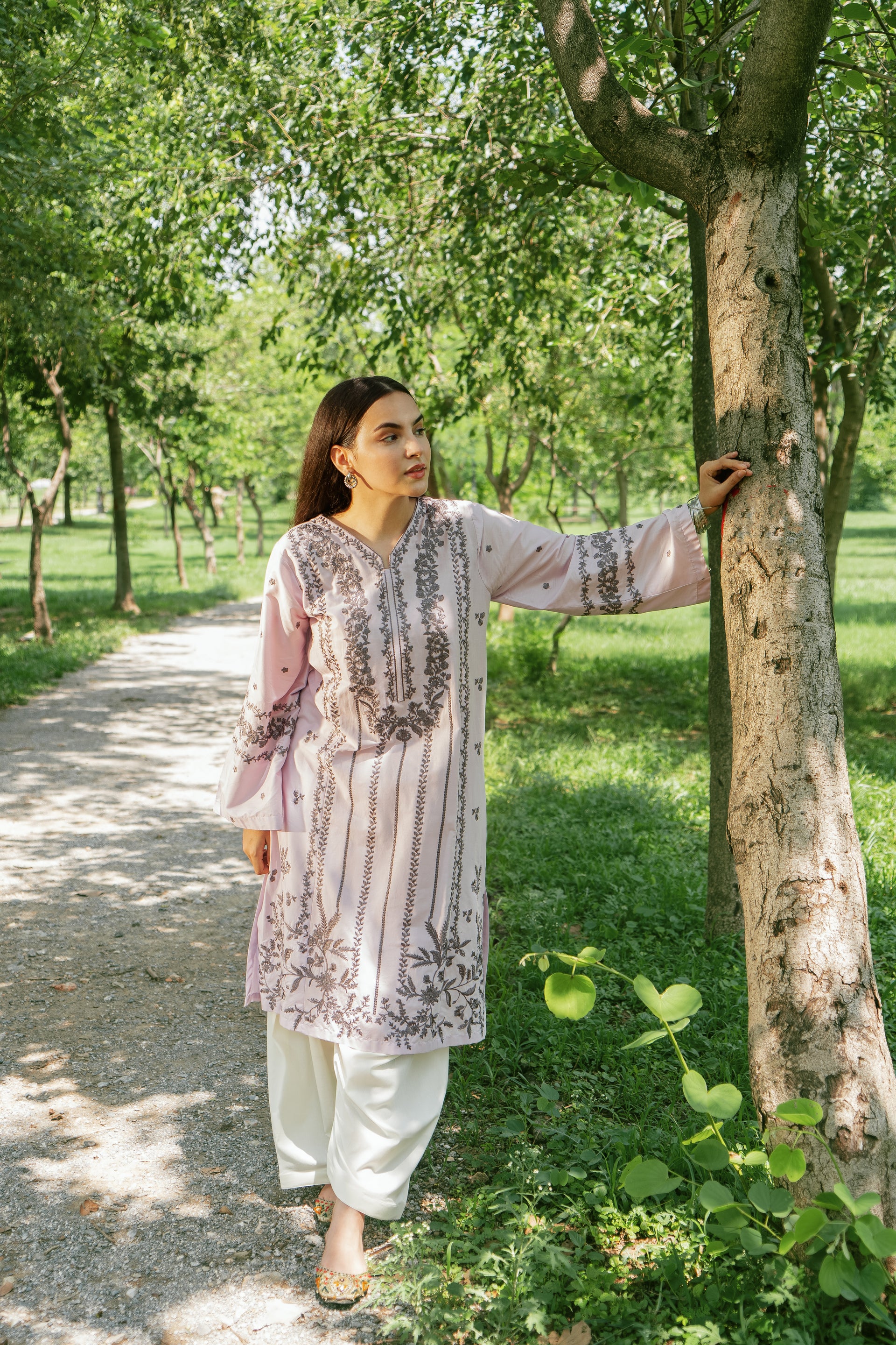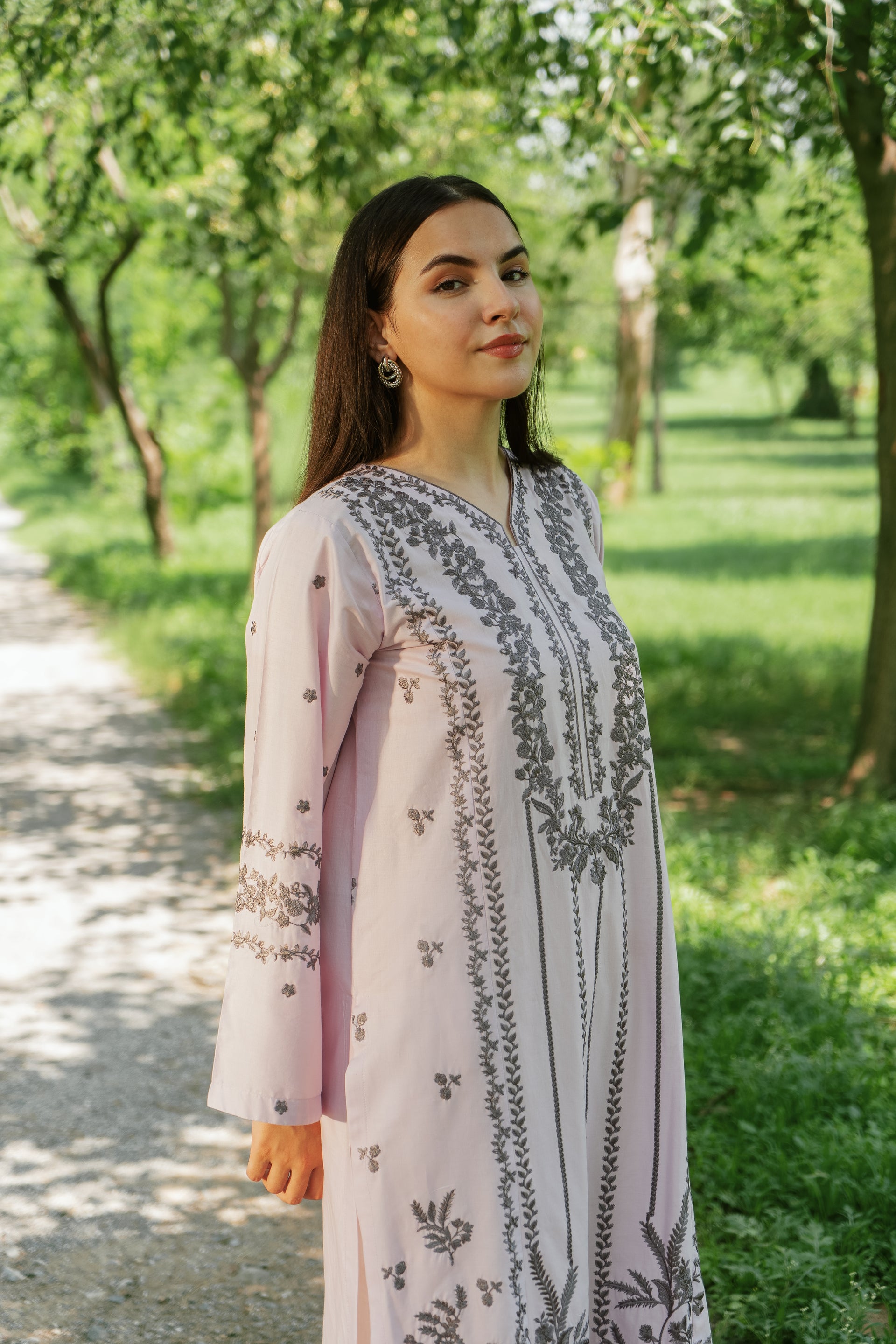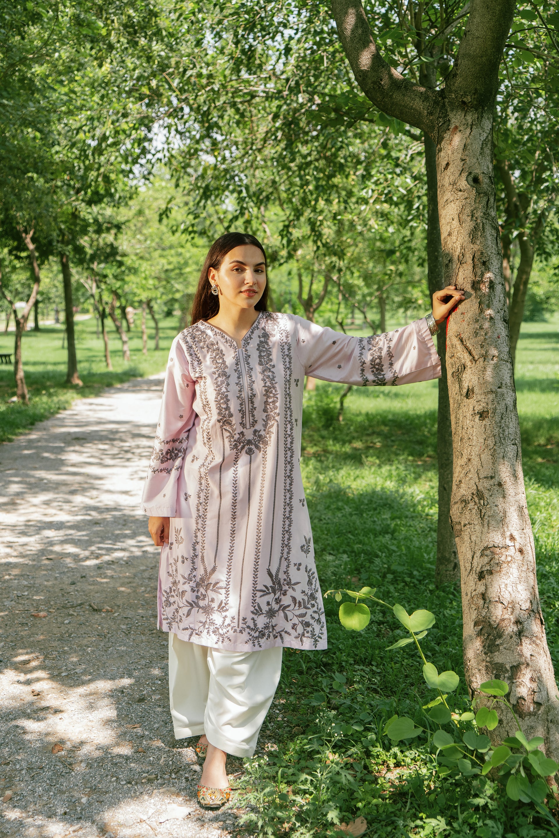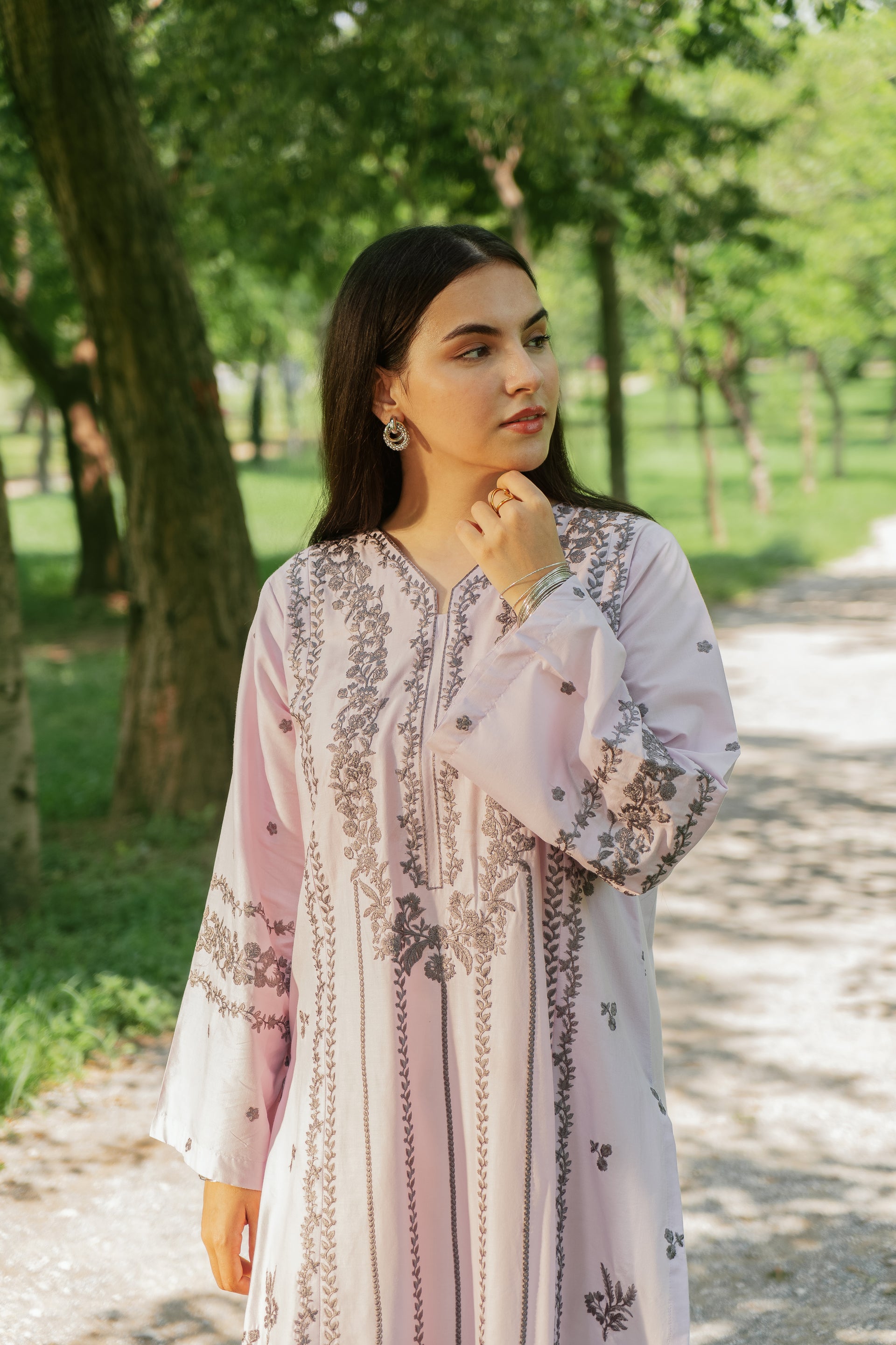 This ready-to-wear 2-piece embroidered lawn suit features a long shirt adorned with intricate embroidery on the front and sleeves, paired with a contrasting off-white shalwar. Crafted for both elegance and comfort, it offers a refined look suitable for various occasions. The detailed embroidery enhances the shirt’s appeal, while the complementary shalwar completes the ensemble with subtle sophistication.