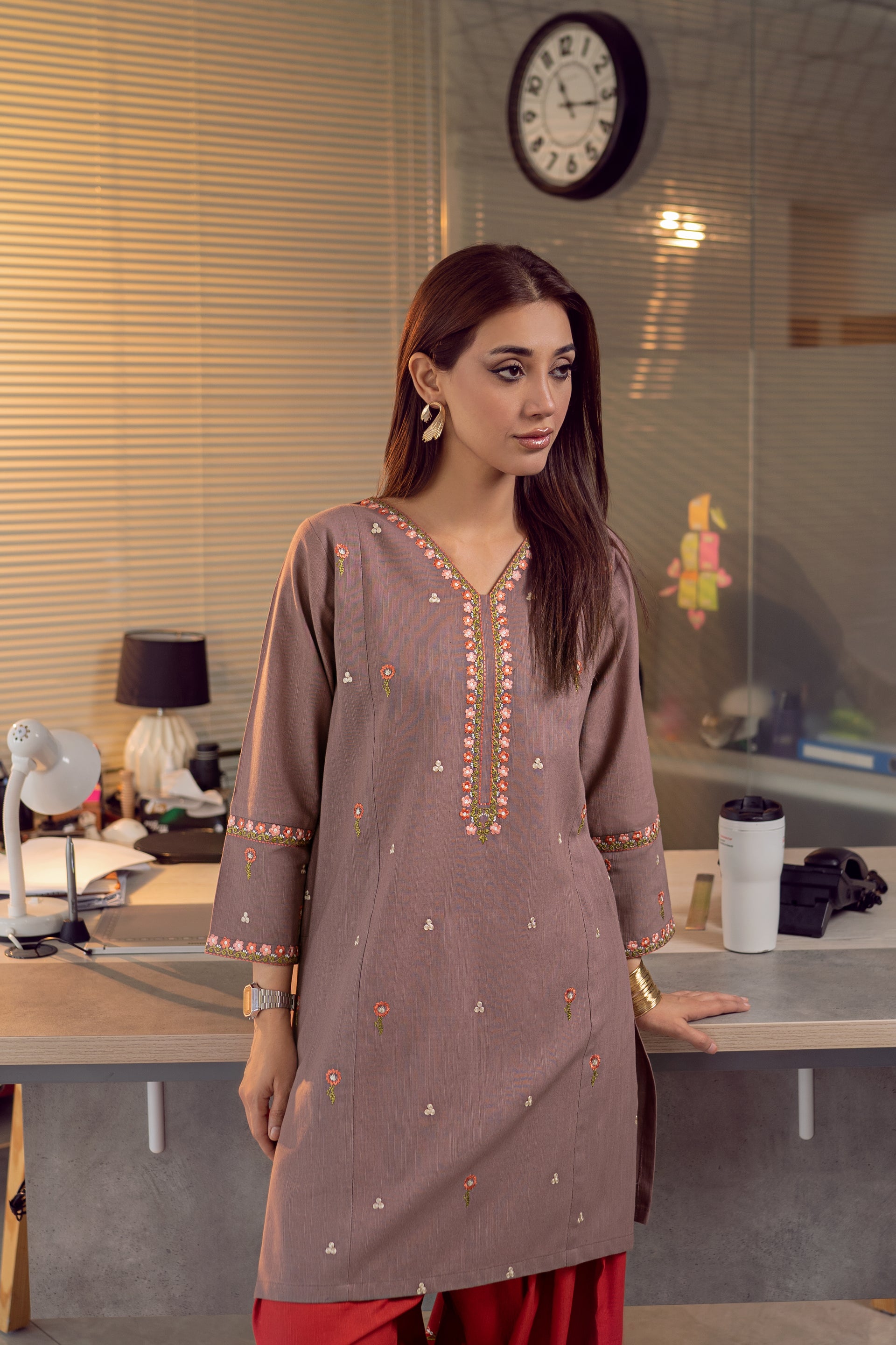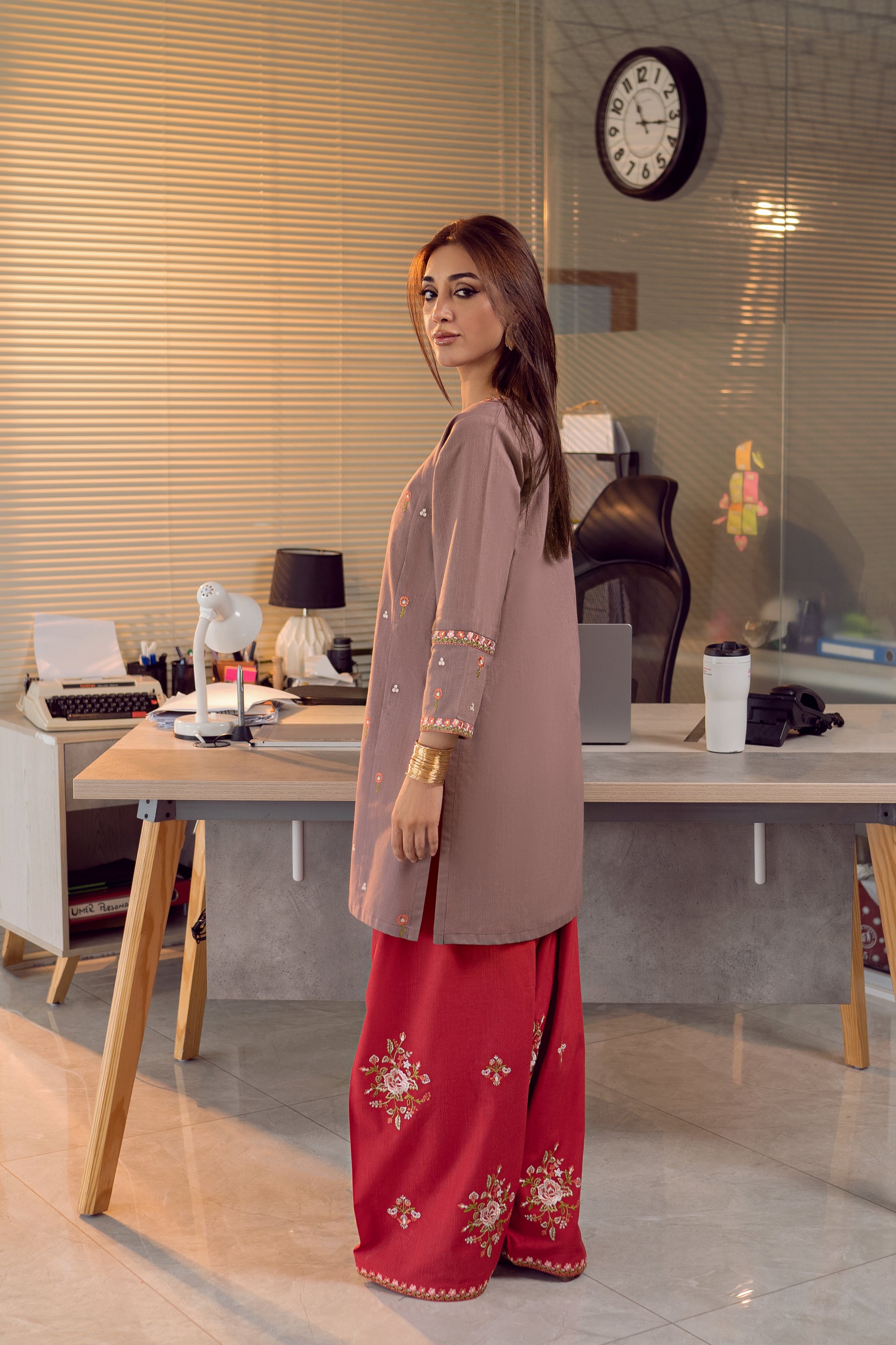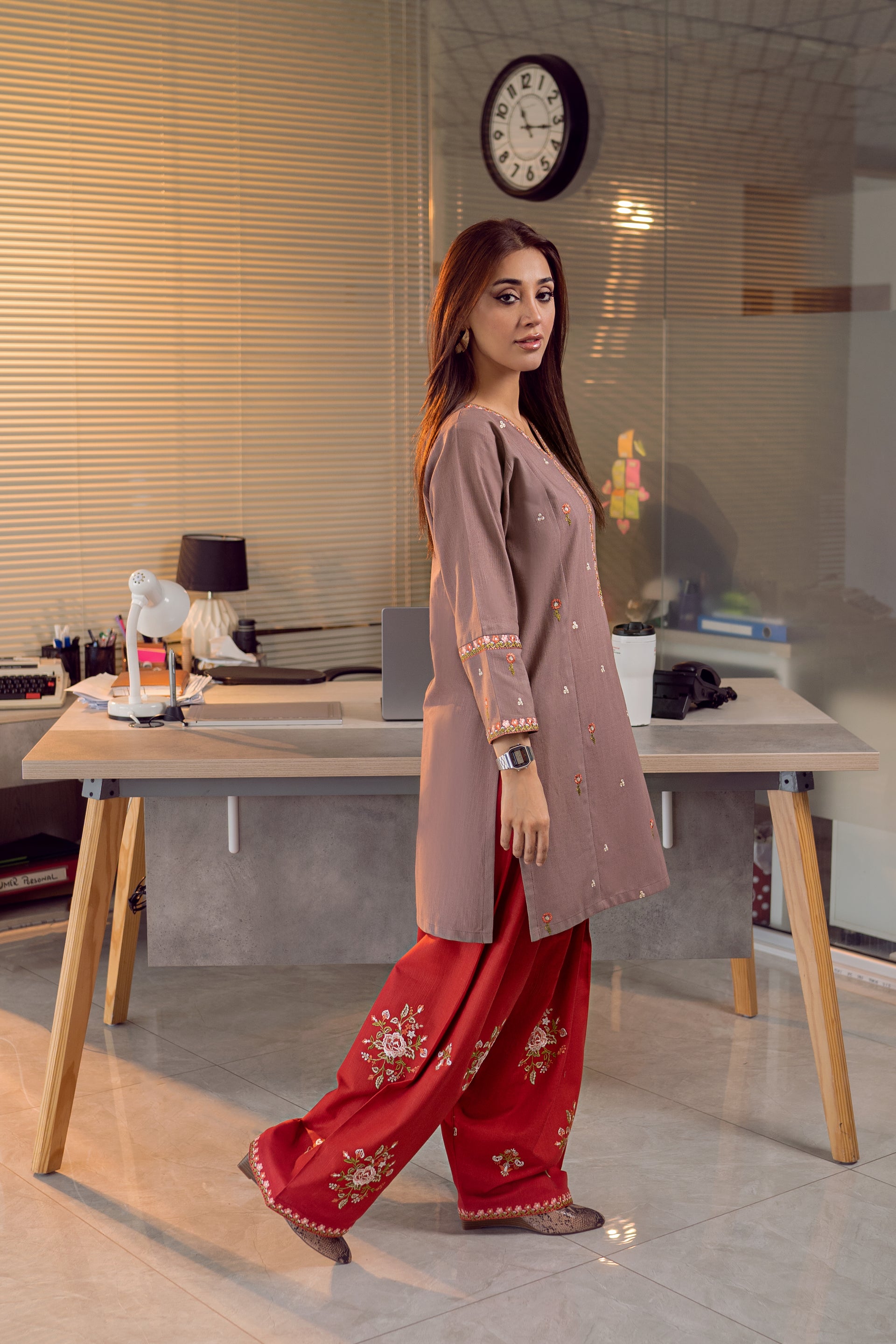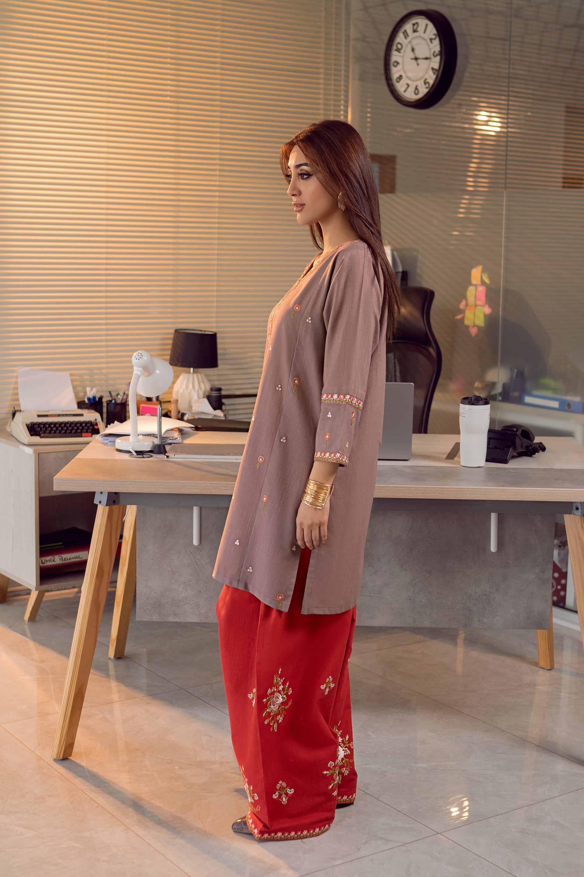 Introducing PARAS, a sophisticated ready-to-wear 2-piece khaddar suit designed for effortless elegance. The ensemble features a tailored short shirt adorned with intricate embroidery across the front and sleeves, paired with a flowing embroidered farshi shalwar for a graceful silhouette. Crafted from premium khaddar fabric, this collection piece combines traditional craftsmanship with contemporary styling—perfect for casual gatherings and everyday wear.