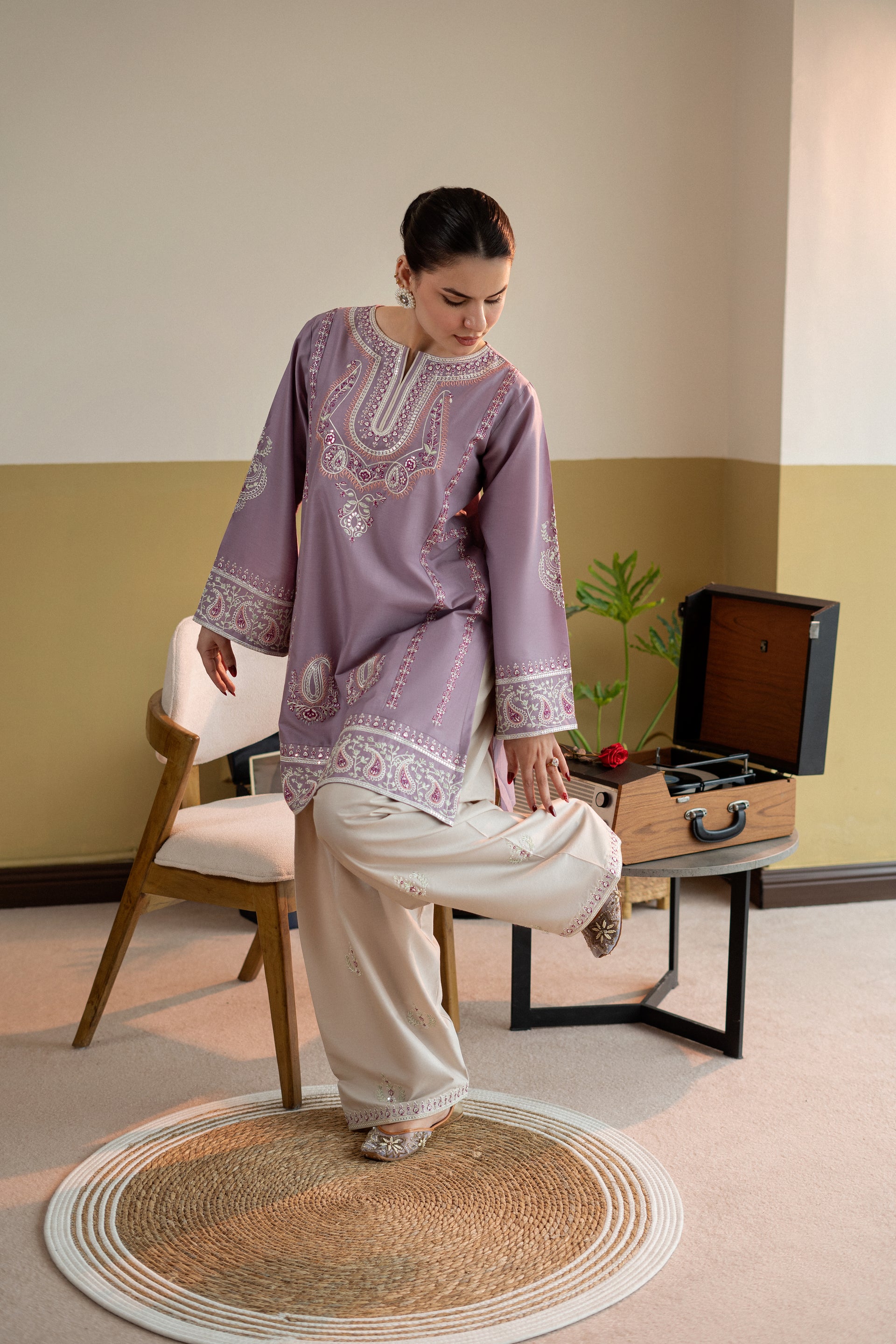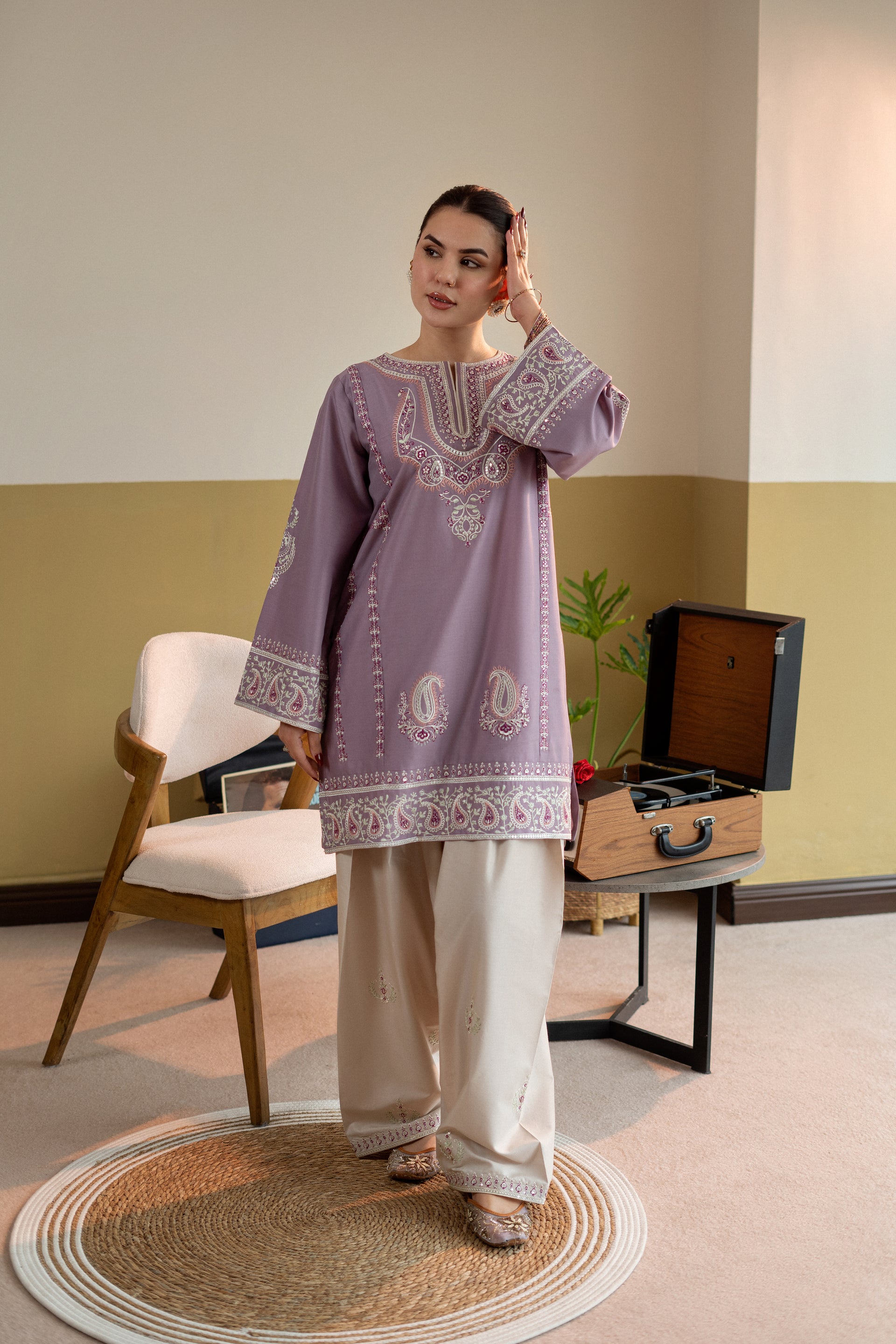 Introducing SEHARZAT, a sophisticated ready-to-wear 2-piece lawn ensemble that captures timeless elegance. The short shirt features intricate embroidery adorning the neckline and center panel, complemented by gracefully loose sleeves that offer effortless comfort. Paired with a loose farshi shalwar, the ensemble showcases delicate sequin accents with fine thread embroidery throughout. Each stitch reflects meticulous craftsmanship, creating a refined silhouette perfect for any occasion.